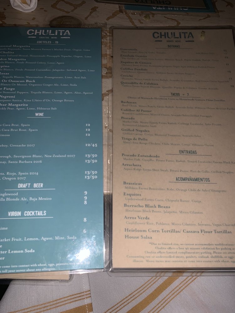 Chulita is a trendy Mexican cocktail bar located in Venice, CA. This restaurant offers a variety of options for vegetarians, vegans, and meat lovers. The menu includes fresh ceviche, flavorful tacos like asada steak and cauliflower al pastor, and delicious guava agua fresca. The charming outdoor seating area adds to the unique dining experience. Customers praise the attentive service, with special mentions of the helpful waitress Chelsea. Chulita's focus on sustainability is evident through their use of compostable containers and plastic-free packaging. Overall, Chulita stands out for its fresh and made-from-scratch dishes, making it a must-visit spot for Mexican cuisine lovers.