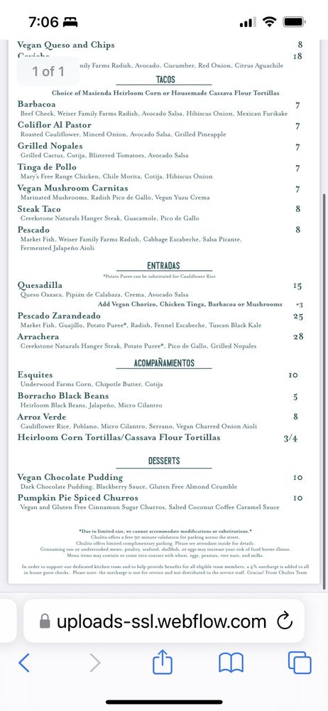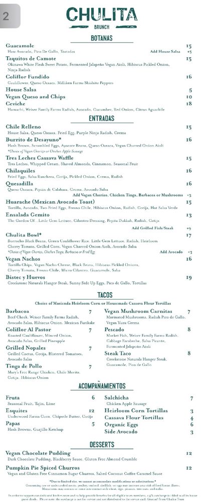 Black Beans, Green Cauliflower Rice, Romaine Lettuce, Radish, Tomato, Grilled Corn, Tortilla Strips, Micro Cilantro, Vegan Charred Onion Aioli, Avocado Salsa Due to high demand we are making our Chulita Bowl available for to-go, but want to stress that if ordered with added steak or fish the quality would not be as it would be receiving it in the restaurant, since steak & seafood are time sensitive products.